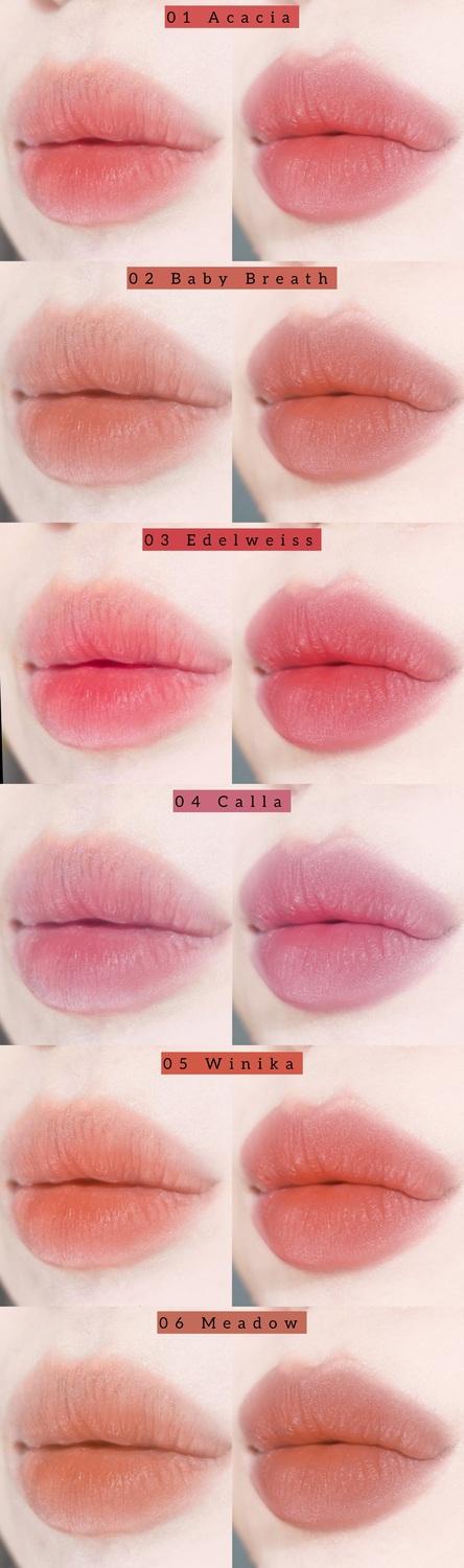 Semi matte finishing that gave the lip looking smooth, for full matte finishing please wait a little bit longer. Very nice and lightweight formula for lips. Come in 6 beautiful shade that cater to asian skin-tone.